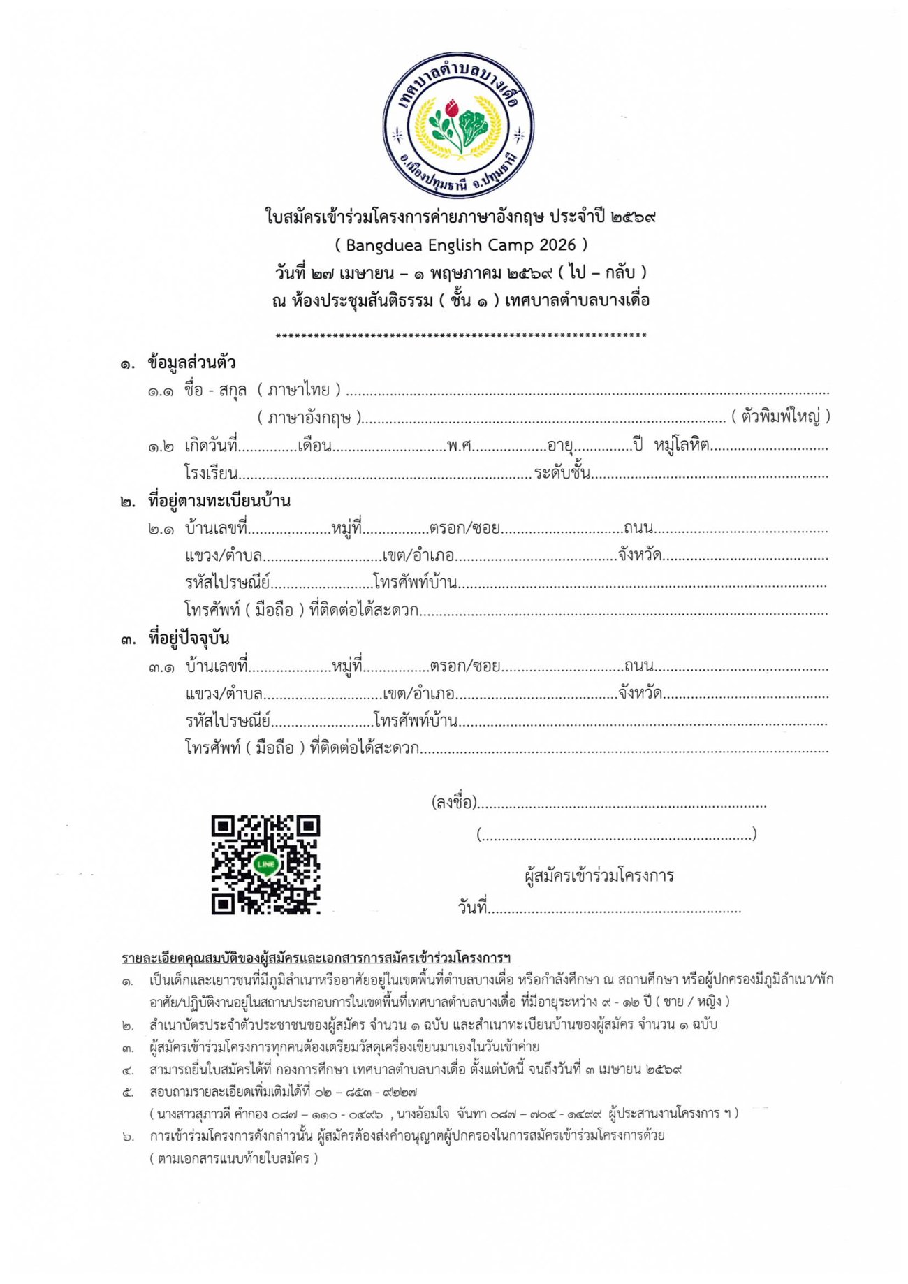 🎉ติดต่อขอรับใบสมัคร และสมัคร เข้าร่วมโครงการ ได้ที่ 🔰กองการศึกษา หรือ โทรสอบถามข้อมูลเพิ่มเติม ☎️ 02 583 9227 หรือ ☎️ 02 581 4499 ต่อ 5