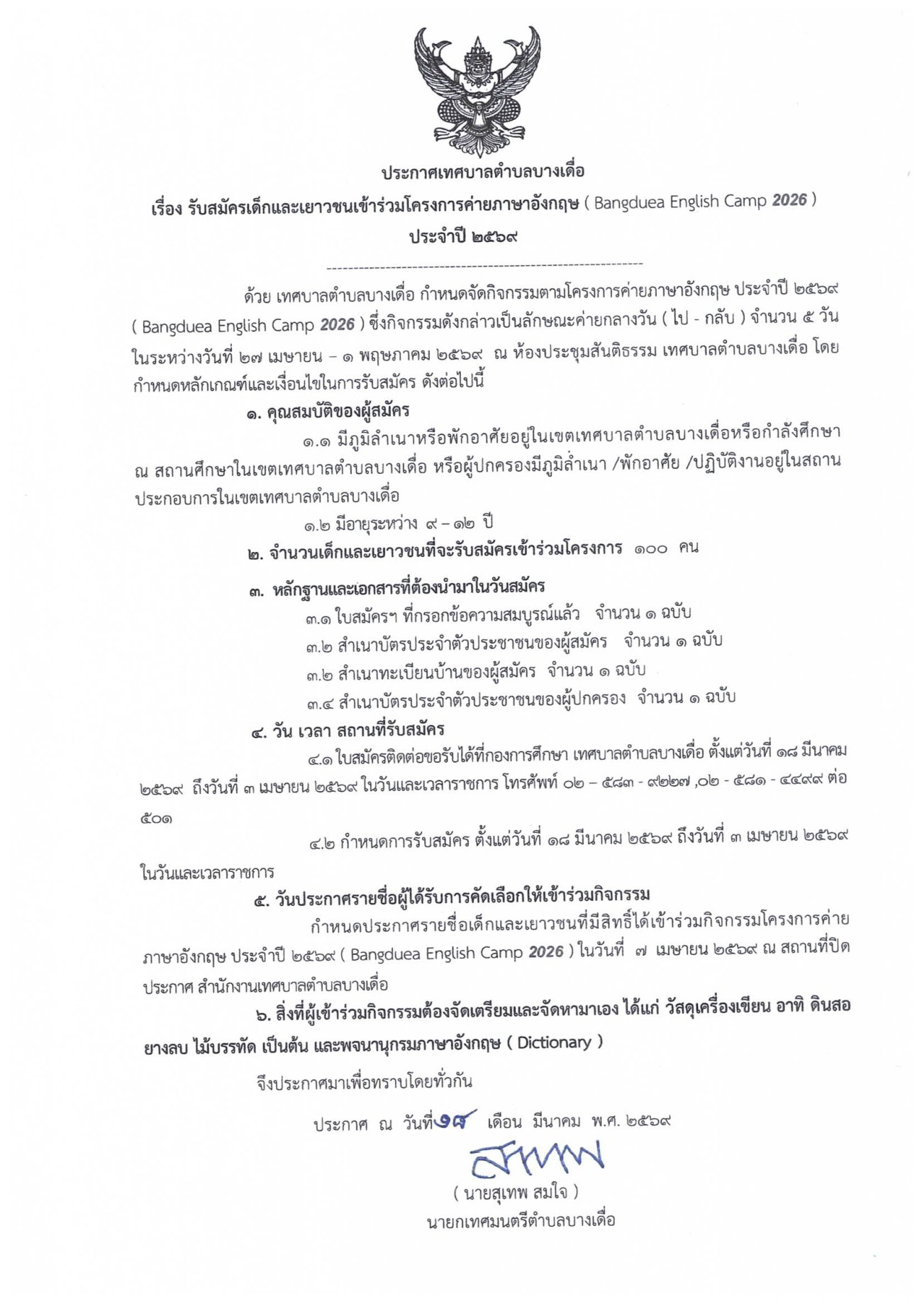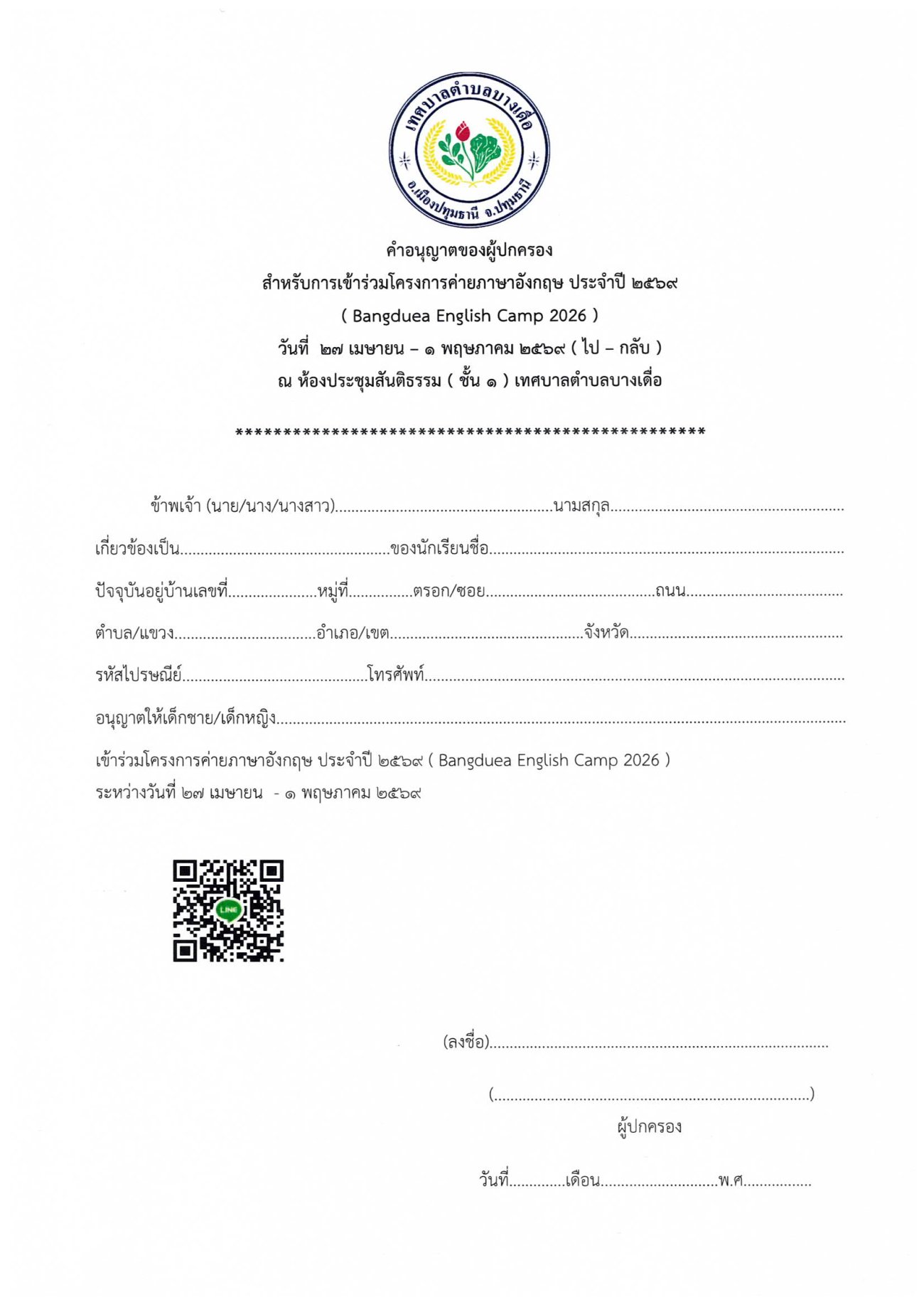 🎉ประกาศรับสมัครเด็กและเยาวชน เข้าร่วม โครงการค่ายภาษาอังกฤษ Bangduea English Camp 2026